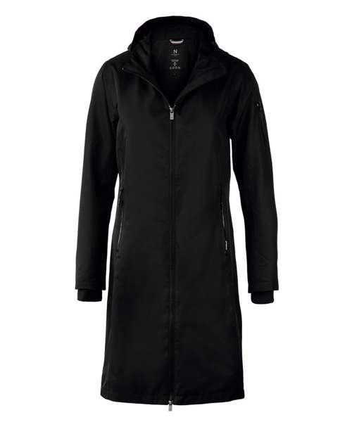 DETAILS: Windproof and waterproof with taped seams. Hood with drawstring. Feminine ¾ length. Water-repellent finish (Bionic Finish® ECO). Windproof. Water resistance: 3000mm. Breathability: 3000gsm/24h. Critically taped seams. SUSTAINABILITY: Reach. Global Compact. Amfori. Water-repellent - Bionic Finish® ECO